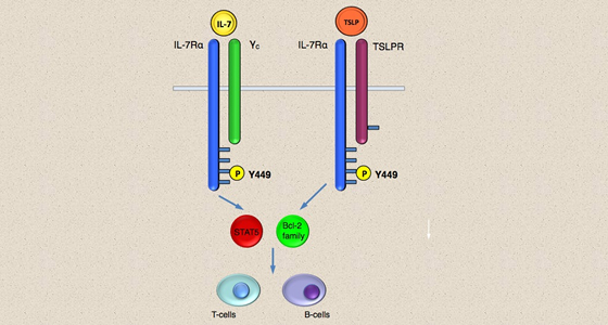 Our research focus is on a cytokine, interleukin-7 (IL-7), that is an essential growth factor for lymphocytes. Defects in IL-7 or its deregulation cause immunodeficiency and lymphomas respectively.